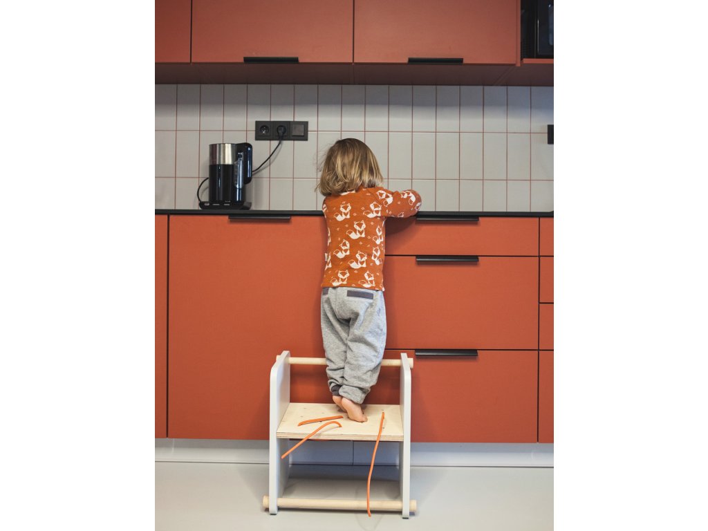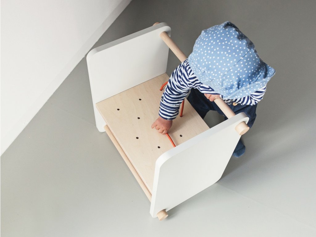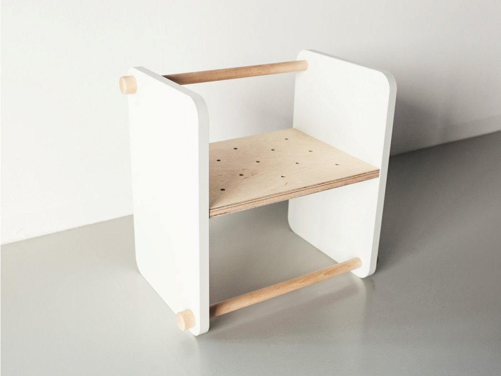 Stolička je plně rozložitelná a skladná. Na její sestavení nepotřebujete žádné nářadí. Má oboustranné využití, z každé strany jinak vysoká příčka zaručuje přizpůsobivost každé věkové kategorii. Expedujeme ve “flatpack” balíku.